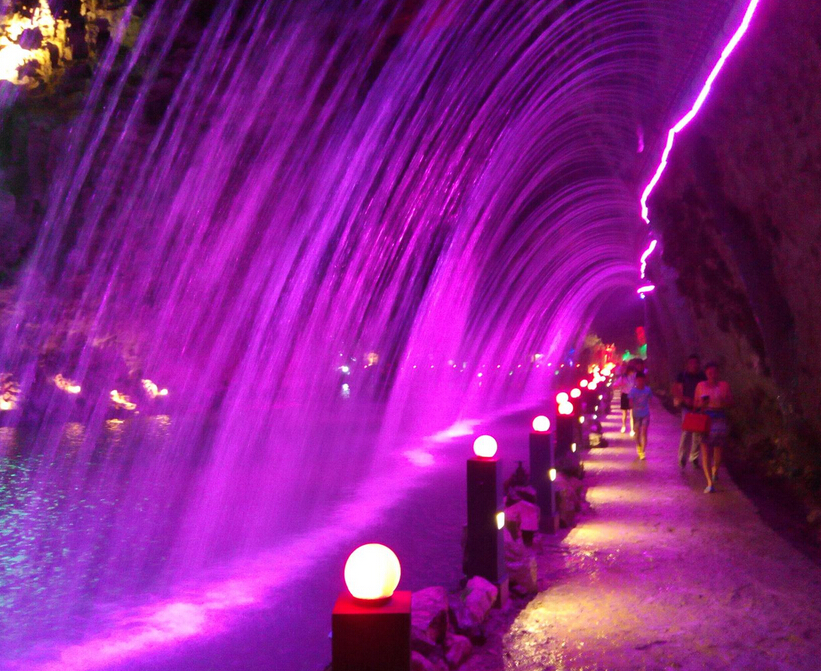 對天泉洞的燈光進行了升級改造,打造長廊水幕、激光隧道、3D投影、電腦燈光四個項目,進行了聲、光、電各方面的展示,使景觀更好地展現給遊客。