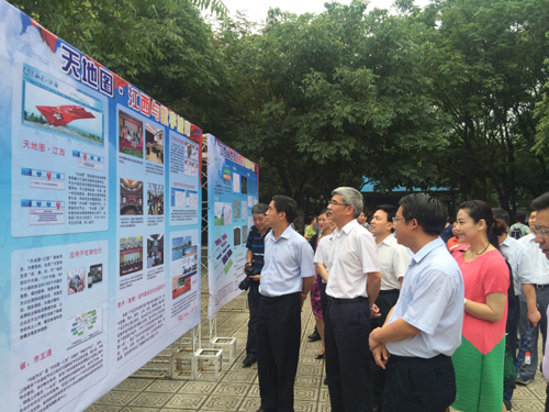 江西省人民政府副省長李貽煌、江西省國土資源廳廳長劉定明、南昌市人民政府常務副市長劉建洋、江西省測繪地理信息局局長高振華、南昌市國土資源局局長陶志等領導來到宣傳活動現場,參與發放宣傳資料,參觀宣傳展板。