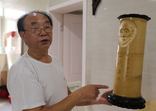 【香港商報訊】記者金山、通訊員閔勇智報道:9月1日,浮雕帽筒《一代宗師蔣兆和》在國家級竹工藝大師何華一“竹磊齋”工作室問世。