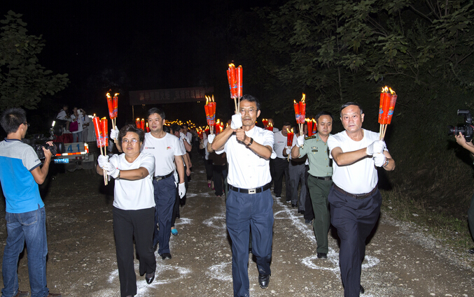據悉,當晚,晴隆縣還在二十四道拐抗戰公路舉行了“晴隆縣‘高舉愛國火炬、弘揚抗戰精神’”活動,70支方陣2974名火炬手手持火炬從第1拐徒步至第24拐,形成壯觀的火炬長龍。活動人數之多、規模之大,創上海大世界基尼斯紀錄。上海大世界基尼斯總部理事會理事楊玉婷到現場為晴隆縣委、縣政府頒發認證證書。