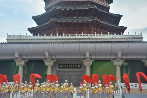 中國芷江•國際和平文化節最後在芷江縣和平文化園勝利廣場的民族文藝演出中落下帷幕,文藝彙演中演員為參加國際和平文化節的海內外代表演出了一曲曲氣壯山河的抗戰歌舞和芷江侗民族文化的靈動舞蹈。