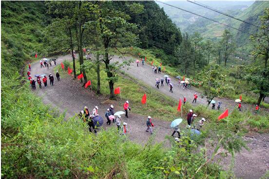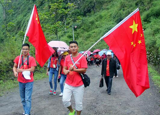 此次活動面向全國開放,志願報名,參加的志願者除黔西南州各縣市、省內人士外,還有來自海南、重慶、廣西、雲南等地的志願者。2000餘名的龐大隊伍中,有年愈花甲的老人,有風華正茂的年輕人,還有滿臉稚氣的孩子。他們迎著飄灑的小雨,穿著鮮紅色T恤,舉著鮮豔紅旗,氣勢昂揚重走“抗戰生命線”晴隆“24道拐”,綿綿細雨中,一條宛如紅色巨龍蠕動在崇山峻嶺之間,場面甚是壯觀。