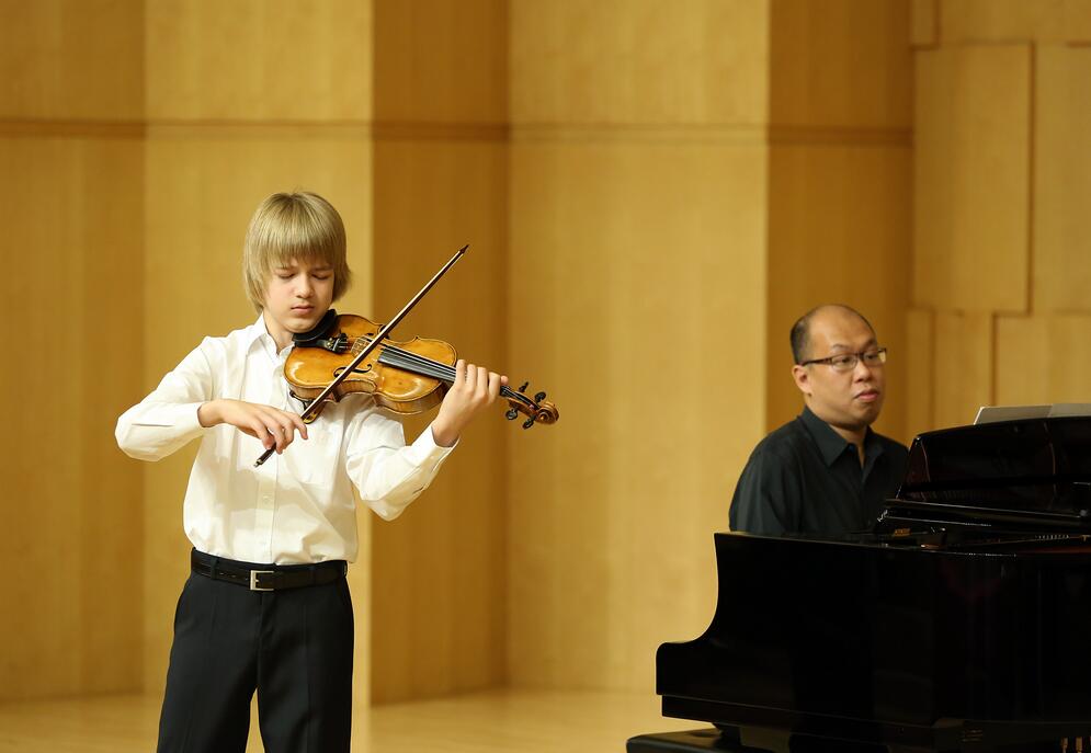 據悉,14日小提琴A組初賽由來自世界各地的20位14歲以下(含14歲)的年輕音樂家參加,每位選手按照 13日上午抽簽決定的順序,依次演奏3首曲子,包含2首小提琴獨奏曲和1首鋼琴伴奏曲目。據組委會相關工作人員介紹,選手們在早上8點半就來到了賽場琴房,摩拳擦掌做足賽前準備練習。