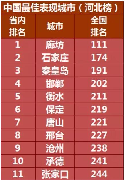 【香港商報網訊】記者曹晶晶報道:日前,經濟智庫米爾肯研究所發布首個中國最佳表現城市報告,展示了國內經濟發展表現最杰出的城市及區域。根據報告中的指標排名,石家莊在全國一線及二線城市中排名第31位,廊坊在三線地級以上城市中排名第85位,為河北省上榜城市中排名最高。