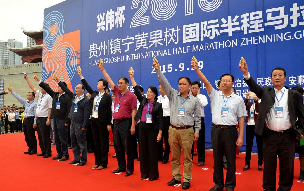 【香港商報網訊】記者 黃慶松、羅禹 實習記者 王航 報道:9月19日,由中國田徑協會、貴州省體育局、安順市人民政府主辦的“興偉杯”2015貴州?鎮寧黃果樹國際半程馬拉松賽在鎮寧布依族苗族自治縣隆重舉行。