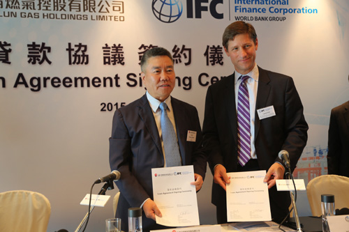 天伦集团董事长(左)与IFC全球主管(天然气)Lance Crist签约
