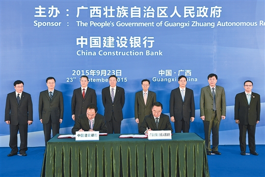 在簽約會上,廣西自治區黨委常委、自治區常務副主席唐仁健,中國建設銀行副行長餘靜波分別代表雙方簽署《戰略合作備忘錄》和《絲路主題產業發展系列基金戰略合作協議》。未來5年,建行將通過各項金融產品為廣西經濟社會發展提供融資支持3500億元;廣西與建行將聯合發起設立總規模約500億元的廣西絲路產業基金、珠江-西江產業發展基金、廣西公共基礎設施PPP產業基金和廣西左右江革命老區振興發展基金等系列產業發展基金。