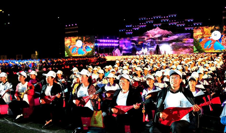 【香港商報網訊】記者金山、通訊員劉彥榮、李剛報道:2000多名琵琶彈唱愛好者坐在一起同臺競技是一種怎樣的宏大場面?9月27日晚,來自四川九寨溝縣機關、學校、鄉村的2015人齊聚在該縣縣中學操場上,懷抱琵琶擺出“2015”字形,同臺撥弦齊聲高唱南坪“采花”小調,在吉尼斯世界紀錄認證官吳曉紅女士的見證下,創造了最大規模的“琵琶合奏”的稱號,以別樣的方式普天同慶中秋佳節。