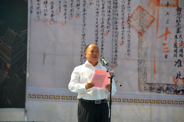 錦屏縣委書記孟凡明在致辭中說,舉辦錦屏文書文化節,是該縣一次集旅遊推介、文化交流、體育比賽展示為一體的盛會,舉辦這次文化節,是弘揚優秀傳統文化,建設現代文化的重要舉措;是響應省委、省政府和州委、州政府提出的建設文化大省、文化大州的號召,充分發揮錦屏文書文化資源優勢,走文化大繁榮、大發展的實際步驟;是借助錦屏獨特的自然環境優勢,打造成為休養健身、康體運動的首選地,塑造大健康示范區的具體行動。辦好這次文化節對於促進錦屏開放開發,加強和推動錦屏與外界的文化交流與經濟合作,全方位展示錦屏豐富的文書文化資源優勢、燦爛的文化旅遊優勢和特色經濟發展優勢,提升錦屏知名度,擴大對外吸引力,進一步加快經濟社會各項事業全面發展有著十分重要的意義。希望通過錦屏文書文化節的舉辦讓更多的人認識錦屏,熱愛錦屏,走進錦屏,投資錦屏,讓更多的信息、文化在活動中得以傳播、交流,通過溝通增進友誼,通過溝通激發感知,真正把錦屏文書文化節辦成展示風貌的窗口,對外交流的平台,促進發展的裏程,真正為全縣旅遊產業的興起壯大注入新的生機和活力。