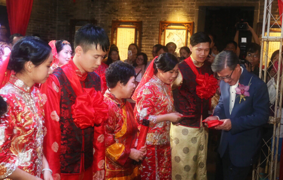 據介紹,佛山嶺南天地致力于傳承與推廣嶺南傳統文化,于2013年首次舉辦了特色民俗集體婚禮,為新人特別開放逾300年歷史的嫁娶屋,通過兩姓聯姻,載明鴛譜,弘揚風韻獨到的嶺南傳統婚嫁文化。