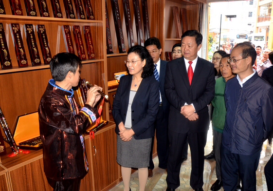 開園儀式后,出席領導并為玉屏簫笛文化體驗園揭牌,祝賀體驗園開園,并一同參觀了簫笛文化體驗園。