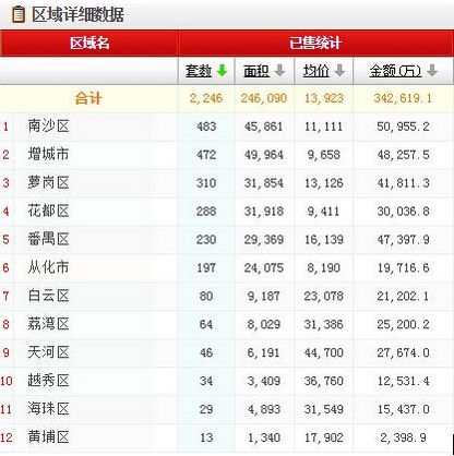 另外, 國慶之后,廣州老城區的均價4萬/平以上高價盤成交增多,其中天河的僑鑫匯悅臺單價已達到89472元/平。由于豪宅的拉動,廣州天河房價已由上月均價39884元/平漲至本月的44700元/平,環比漲12.1%。