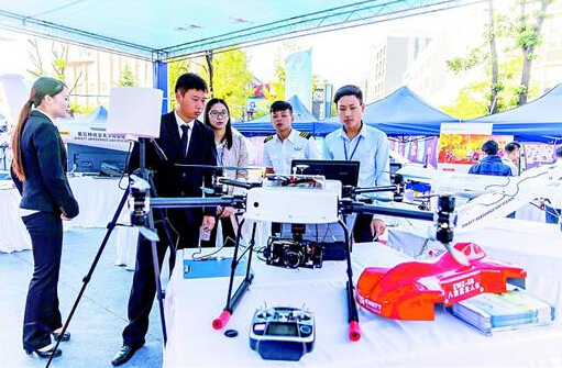 昨日,在“全國大眾創業萬眾創新活動周”武漢大學科技園企業成果展示區,無人機展示臺吸引了人們關注。(記者 梅濤 新聞研修班學員 李偉 攝)