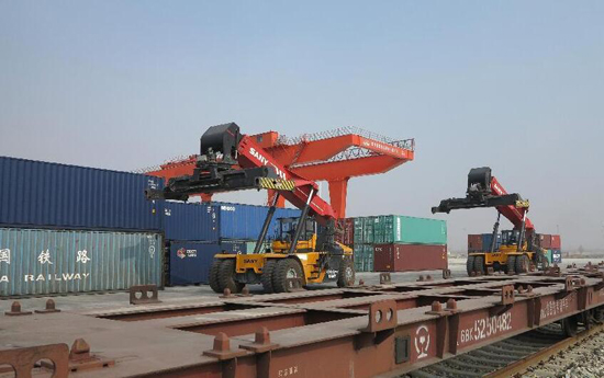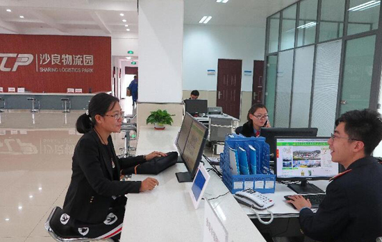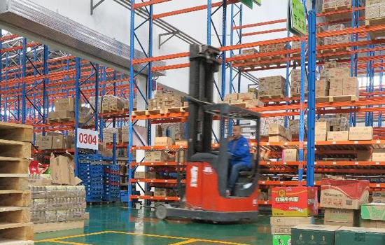 10月20日,工作人員在沙良物流園區倉儲區內搬運貨物。當日,內蒙古最大的公鐵聯運現代物流基地沙良物流園正式投入使用。沙良物流園位于呼和浩特市南郊,占地1830畝,以公鐵聯運為基本運輸方式,提供倉儲、物流配送、平臺交易、餐飲住宿等多種服務。新華社記者 邵琨 攝