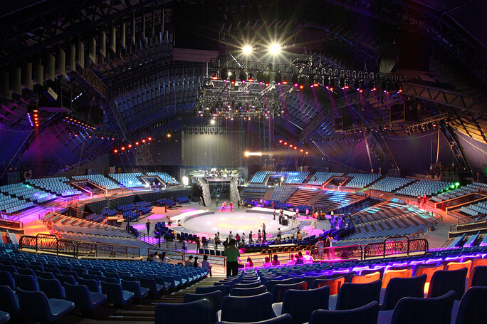 在現場,記者看到馬戲新館門前的安檢門和驗票機都已經安裝完畢,只待十天后“上崗”。為了方便看馬戲的觀眾,新場館更人性化地貼心設計了十多個出入口,方便來各地觀賞馬戲的觀眾,且停車場與長隆海洋王國共用,保證足夠車位。走進場館,便能看到清一色的藍色座椅一排排整齊地圍繞馬圈,幾乎是360度無死角觀看,這在馬戲場館里也是較為罕見的。“整個馬戲場館內一圈都是座椅,這對一些魔術表演來說,是非常難的。”場館舞美負責人表示,這樣的場館,無疑就是對所有進場比賽、表演的節目提出了更高的要求。抬頭看,整個場館便會有一種親臨海底世界的感覺。
