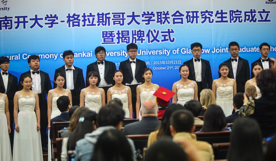 南開大學—格拉斯哥大學聯合研究生院2015年開始招收全日制碩士研究生,首批開設國際關系、區域經濟學(城市與區域規劃)、環境管理與經濟(環境管理)、翻譯學4個專業。首批29名學生已于今年9月入學。學生須同時滿足兩所名校的研究生錄取標準方可入學,修業合格后也將同時獲得兩校的碩士學位。