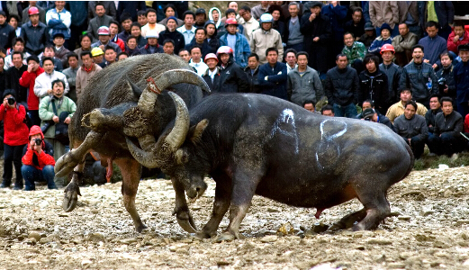 “雷山斗牛一直引領中國的斗牛界,包括識牛、養牛、訓牛、斗牛規則等。雷山“苗嶺斗牛”就猶如“星光大道”、“中國好聲音”等比賽,培養和發現中國最牛的牛王。我們所舉辦的斗牛目的是挖掘斗牛文化,拉動旅游資源,提高養牛農民的經濟收入,培養和發現中國牛王。”雷山苗年苗嶺斗牛大賽組委會解說專家余光海向記者介紹說。