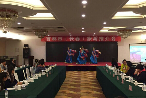 吉林市隕石博物館、吉林市北大壺滑雪場、吉林市圣德泉親水度假花園、吉林市天天假日國際旅行社等旅游企業負責人在推介會上進行了產品和項目推介。