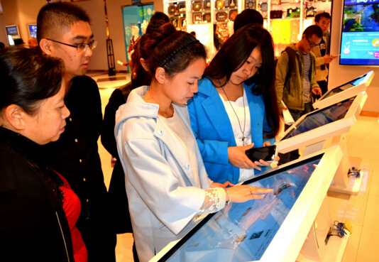 看和買并不足以概括體驗館的功能。在這里,最讓人驚艷的正是“體驗”二字。過道上安放的觸摸屏,“云市場”的大門隨即為您打開,所有的產品、品牌一眼望盡;3D試衣鏡,不必再拘泥于進入試衣間一件件換,揮揮手臂就能實現造型百變;累了,休閑區來一杯茶;想知道爆款長什么樣,連接體驗館內的無線WIFI就可以用手機查詢,大數據帶來的消費分析可以向你推薦你最想要的產品;如果想知道實時交易的信息或熱銷商品排行榜,體驗館正中間位置的大屏幕上實時數據會給出答案。