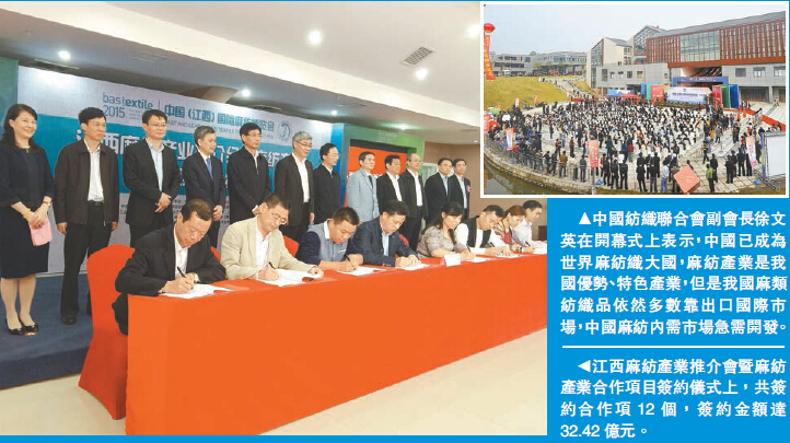 11月6日至8日,2015中國(江西)國際麻紡博覽會在「中國夏布之鄉」、「仙女湖下凡之地」新余舉行。作為以發展麻紡產業為主題的國際性博覽會,它集產品展示、時尚發布、研討論壇、產業推介等多種形式於一體,成為麻紡產業商貿與藝術的重要交流平臺。