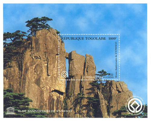1997年,多哥共和国发行遗产中国黄山小型张1枚,图为始信峰.