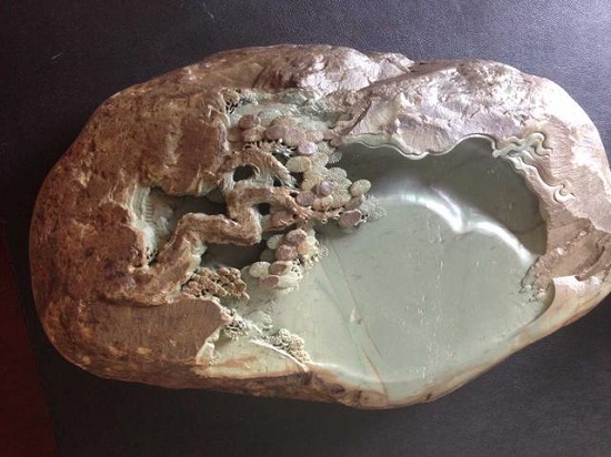 其二:從色理上分析,用于制硯的祁陽石基本分為五種:第一種是紫袍玉帶石,第二種是翡翠綠石料,第三種是彩石,第四種是紫石板,第五種是黑金石。