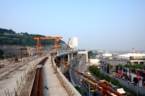 记者了解到,珠澳轻轨作为连接珠海横琴和广州的快速客运铁路,在中国“一带一路”战略框架下有着重的要意义,中国交建旗下的中国港湾和中交四航局承建了C370轻轨标段。澳门轻轨C370标段线路长达3.075km,跨越澳门科技大学、国际机场以及澳门氹仔新码头等区域,是将来澳门海陆空接驳的重要枢纽;同时轻轨C370标段也成为了轻轨一期建设中交涉最多、不可控因素最为复杂的施工标段,施工进度与质量好坏影响着来澳旅客对澳门的第一映象。