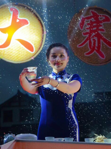 比賽現場,雖然下起蒙蒙細雨,但一款款如仙似畫的茶藝演繹與一道道幽香四溢的香茗,讓在場的上百位嘉賓與觀眾被深深打動,隨著清揚的音樂與茶藝師柔美的韻律,漸漸進入“一心清靜了無痕”的情境中。