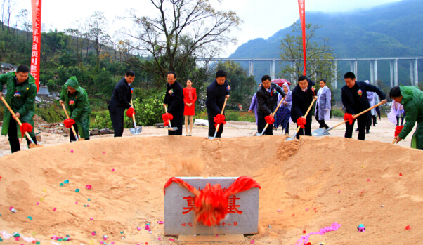 儀式上,銅仁市、萬山區領導和歡樂世界項目業主代表為項目開工奠基培土。