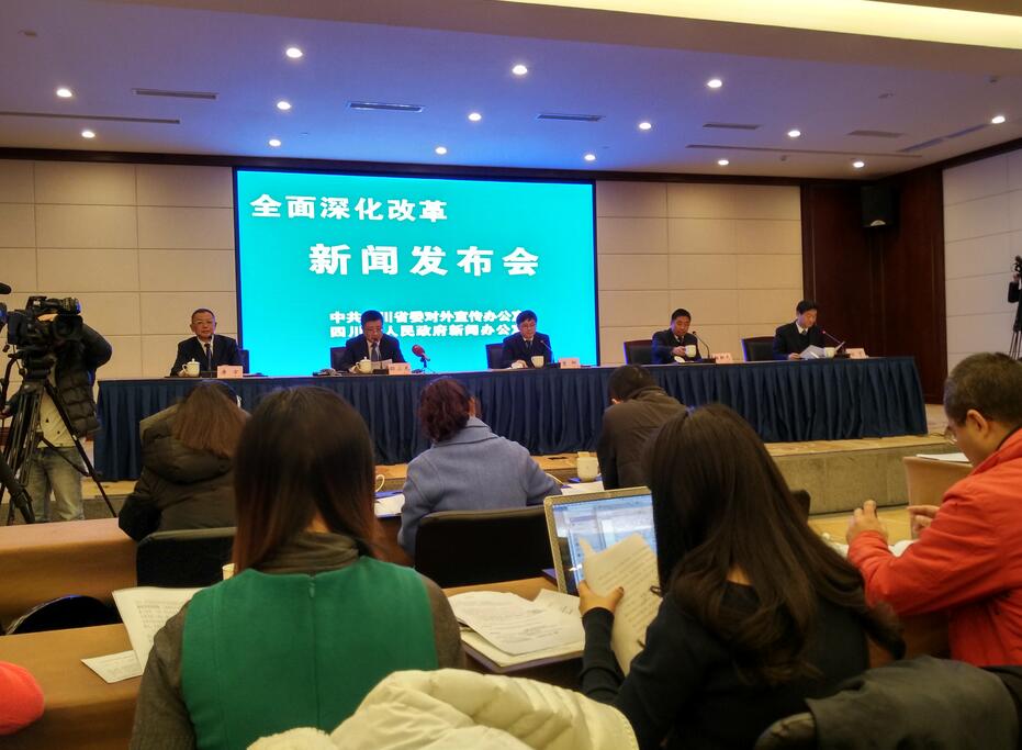 【香港商報網訊】記者 付莉莉 報道: 四川省委認真貫徹中央關于全面深化改革決策部署和習近平總書記重要講話精神,精心謀劃和統籌實施省委十屆四次全會確定的各項改革,取得了階段性重要成果,確立的256項改革事項全部啟動,目前已經完成51項。14日,中共四川省委十屆七次全會精神解讀系列新聞發布會第七場-“全面深化改革”在成都召開。四川省委副秘書長曾卿、省委農工委副主任楊新元、省發改委常務副主任邵小龍、省國資委副主任任丁出席發布會并回答記者提問。