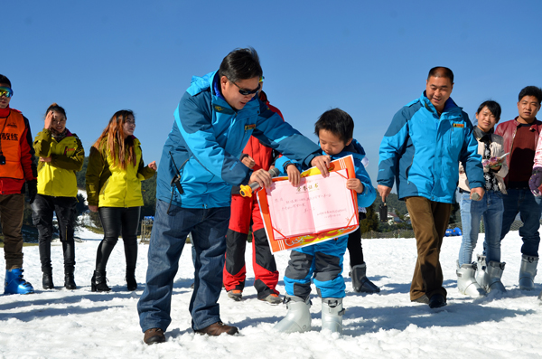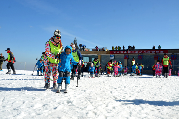 “玉舍雪山滑雪場于2013年建成營業,雪場面積5萬平方米,能為游客提供高山滑雪、雪地摩托、雪上飛碟、雪地悠波球等雪上運動項目。現在滑雪場日接待量可達6000人次,開業三年來,已吸引游客20余萬人次。本次活動旨在讓幼兒能走進森林,了解森林,為培養幼兒對體育活動的興趣,促進幼兒的身體健康,增強身體素質,提高對外界的適應能力以及自我保護的能力。此外,今冬滑雪季,玉舍雪山滑雪場還將舉辦冰雪藝術節和“比基尼”滑雪賽為游客助興。”六盤水市玉舍國家級森林公園管理處副主任劉祥仁向記者介紹說。
