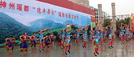長鼓舞是國家非物質文化遺產。想要看到正宗的長鼓舞,得到其發祥地之一江華大圩鎮文明村,那個村子產生過4代“鼓王”。70多的趙明華老人是第27代傳人,也是如今健在的第三代“鼓王”。老趙和小兒子跳上八仙桌,站定,深吸一口氣,長鼓開始在他們的手上舞動,或蹲、或站,勾腰抬腿間,如行云流水,沒有一絲拖沓。正是這些文化的傳承不息,江華,慢慢以其瑤族人口聚集最多、瑤族民間風俗保存最純粹、瑤族歷史印痕留存最久遠,而成為海內外瑤族同胞所認同的文化中心。