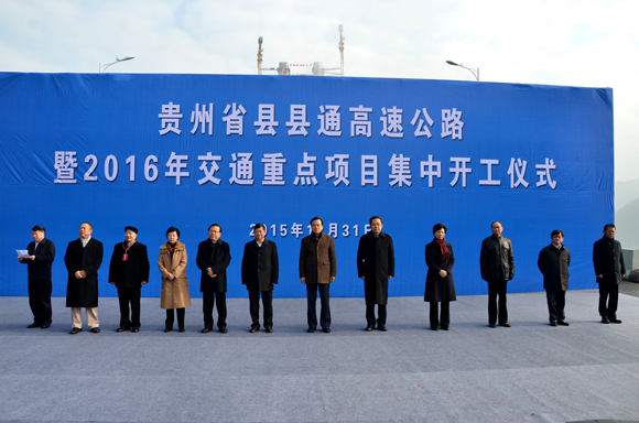 開工儀式上,貴州省委書記陳敏爾宣布貴州省縣縣通高速公路目標現在全面實現!2016年全省交通建設重點項目集中開工!