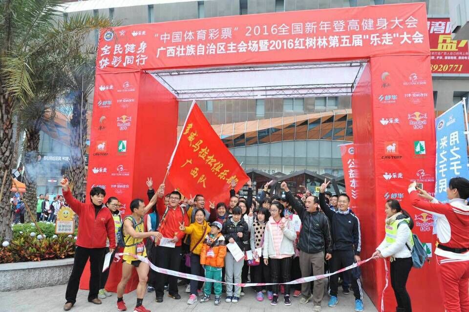 【香港商報訊】記者歐陽萍報道:1月1日,2016全國新年登高健身大會暨2016紅樹林第五屆樂走大會在廣西南寧市航洋國際廣場舉行,來自各界群眾、登山、徒步等1000多名愛好者用登高、徒步方式鍛煉身體,喜迎新年。