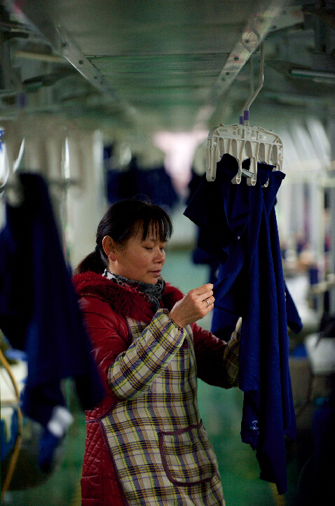 一位商場負責人在南昌市青山湖區一家服裝廠的樣品間挑選產品。