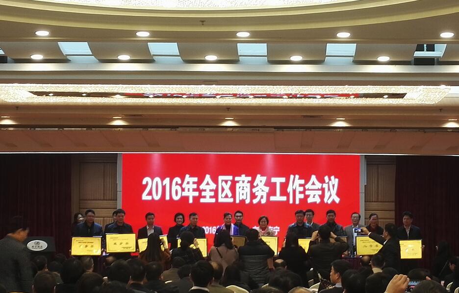 會議當天還表彰了2015年廣西商務先進單位、先進企業;11家重點園區和企業作典型發言。