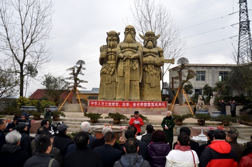 【香港商报网讯】记者黄庆松报道:1月23日,中华人文三祖黄帝、炎帝、蚩尤帝塑像和"九黎十八寨中华人文三始祖东方道场"在位于贵州省贵州双龙航空港经济开发区的贵阳市民间文化交流促进会落成。来自全国各地的数十名专家学者,隆重地为三祖塑像和"东方道场"揭幕。