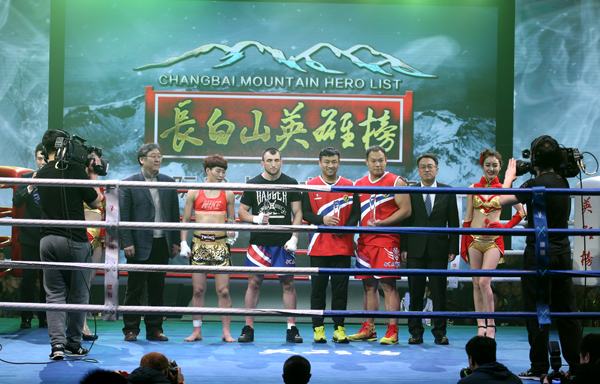 長白山管委會副主任蔡宏偉在開場儀式致辭中說道,曆經十年的創業發展,今天的長白山已經走出一條“旅遊城鎮化、城鎮景區化、景區國際化”的科學發展道路,站在了新的更高的曆史起點,廣大長白山兒女正在按照特色化的國際化發展理念,聚精會神謀發展,埋頭苦幹促振興,全面開啟長白山生態文明建設的嶄新篇章。今天,我們在長白山舉辦國際武術搏擊爭霸賽,來自國內外的“武林高手”在風雪長白山對決爭霸、各展雄姿,對於促進中外文化交流,推動全民健身運動發展,提振文化自覺自信都具有重要意義。我們相信,通過精彩紛呈的賽事活動,強大有力的媒體推介,“長白山英雄榜”武搏爭霸賽一定能夠成為長白山展示品牌形象的新名片、新平台,向世界打開一扇對外開放的新窗口。希望每一位選手都能在這裏充分展示精湛武術技藝,並希望長白山的林海雪原風光、特色民俗風情、生態小鎮風采,都能給朋友們留下難忘美好的記憶。