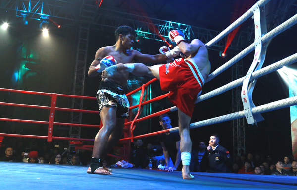 【香港商報網訊】實習記者馬力報道:1月31日晚,2016年“長白山英雄榜”國際武術搏擊爭霸賽在長白山池北區正式開賽。來自中國、俄羅斯、泰國、日本、埃及、伊朗、德國7個國家的22名選手進行了搏擊對抗,展示了近身格鬥的風采。
