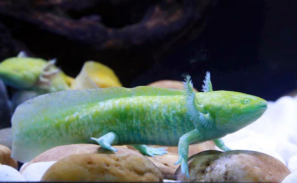 記者了解到,為迎接新年,給遊客更多的知識,在展示“八鯊迎春”的壯觀的同時,長隆海洋王國還引進了一批奇特的小動物——六角恐龍魚。六角恐龍魚,又名墨西哥鈍口螈,是一種古老的兩棲品種。六角恐龍魚原產於墨西哥,棲息在當地高山的湖泊之中。