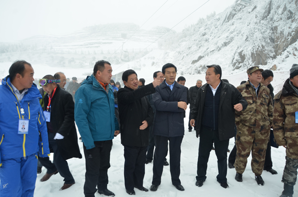 六盘水市委书记李再勇,市长周荣及相关领导在梅花山滑雪场调研建设情况