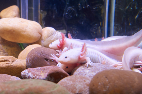 除了“八鯊迎春”的壯觀的同時,長隆海洋王國還引進了一批奇特的小動物——六角恐龍魚,又名墨西哥鈍口螈,是一種古老的兩棲品種,它原產於墨西哥,棲息在當地高山的湖泊之中。
