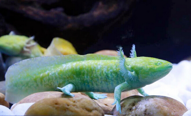 記者了解到,為迎接新年,給游客更多的知識,在展示“八鯊迎春”的壯觀的同時,長隆海洋王國還引進了一批奇特的小動物——六角恐龍魚。六角恐龍魚,又名墨西哥鈍口螈,是一種古老的兩棲品種。六角恐龍魚原產于墨西哥,棲息在當地高山的湖泊之中。