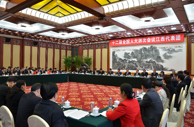 【香港商報網訊】記者郭美勤 黃穎報道:3月5日下午,十二屆全國人大四次會議江西代表團在住地金臺飯店審議政府工作報告,并向境內外媒體開放。