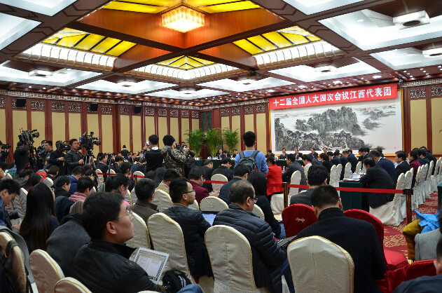 江西是習近平總書記今年春節前視察過的地方,江西代表團又是本次大會第一批對外開放的代表團,因此受到新聞媒體的廣泛關注。在記者提問環節,江西如何打造美麗中國的“江西樣板”,如何弘揚井岡山精神,如何實施科技創新來促進產業升級,農民如何致富等問題被擺上臺面。