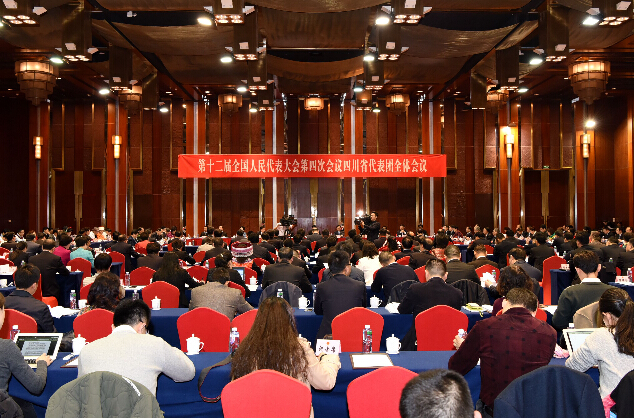 十二屆全國人大四次會議四川代表團在駐地舉行第二次全體會議。