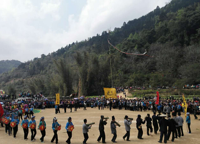 【香港商報網訊】記者凌燕、實習記者李勤虹報道:銅鼓喧天,山歌嘩人。3月7日,一年一度的壯族螞拐節在廣西河池市東蘭縣巴疇鄉巴英村舉行,上萬民眾齊聚一堂,領略了壯族極具神秘色彩的螞拐節魅力。