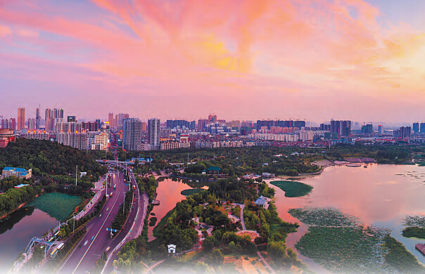 近年來,漢陽城市建設成果日新月異,圖為月湖周邊城區美景。