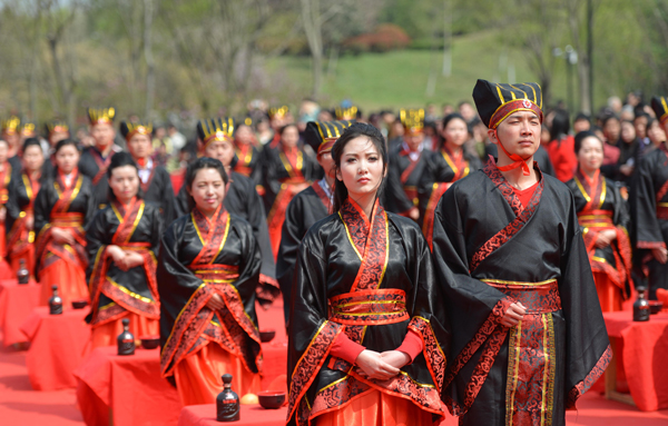 為倡導青年人傳承中華文化,2014年、2015年合肥連續兩年成功舉辦青年集體婚禮,超百對新人通過參加這一活動,攜手邁入婚姻的殿堂,已逐漸成為具有一定影響力的品牌活動。本屆青年集體婚禮,以古典的秦漢婚典進行,在合肥乃至全國尚屬首次,既展現了先秦文化的博大精深,也反映了合肥悠久的曆史文化底蘊。