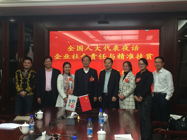 【香港商報網訊】記者杜林、趙振樺報道:今年的李克強總理政府工作報告提到,要深入開展定點扶貧、東西協作扶貧,支持社會力量參與脫貧攻堅。兩會期間,全國人大代表、哈爾濱博發康安控股集團董事局主席陸標、明尚公益基金會秘書長李欣蓉、江蘇無錫錫山區東港鎮山聯村委黨總支副書記朱虹、江西貴溪市樟坪佘族鄉黃思村黨支部書記桂千金等代表走進南通三建北京總部,專門就精准扶貧話題展開調研座談。